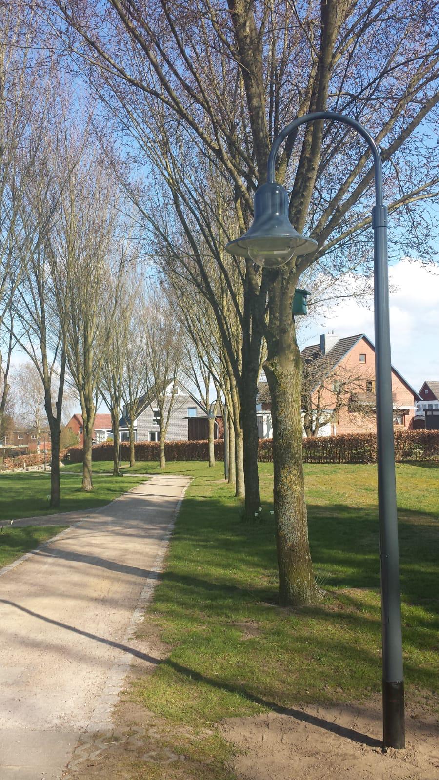 Ab sofort können Elmenhorster Bürger auch bei Dunkelheit den Weg durch den Elmenhorster Garten nutzen. Sechs neue LED-Leuchten wurden vom Bauhof entlang des Weges vom Jersbeker Tor zum Fischbeker Tor montiert. Die bisher dort vorhandenen niedrigen Sockelleuchten, welche in der Vergangenheit mehrfach dem Vandalismus zum Opfer fielen, wurden durch Mastleuchten ersetzt.